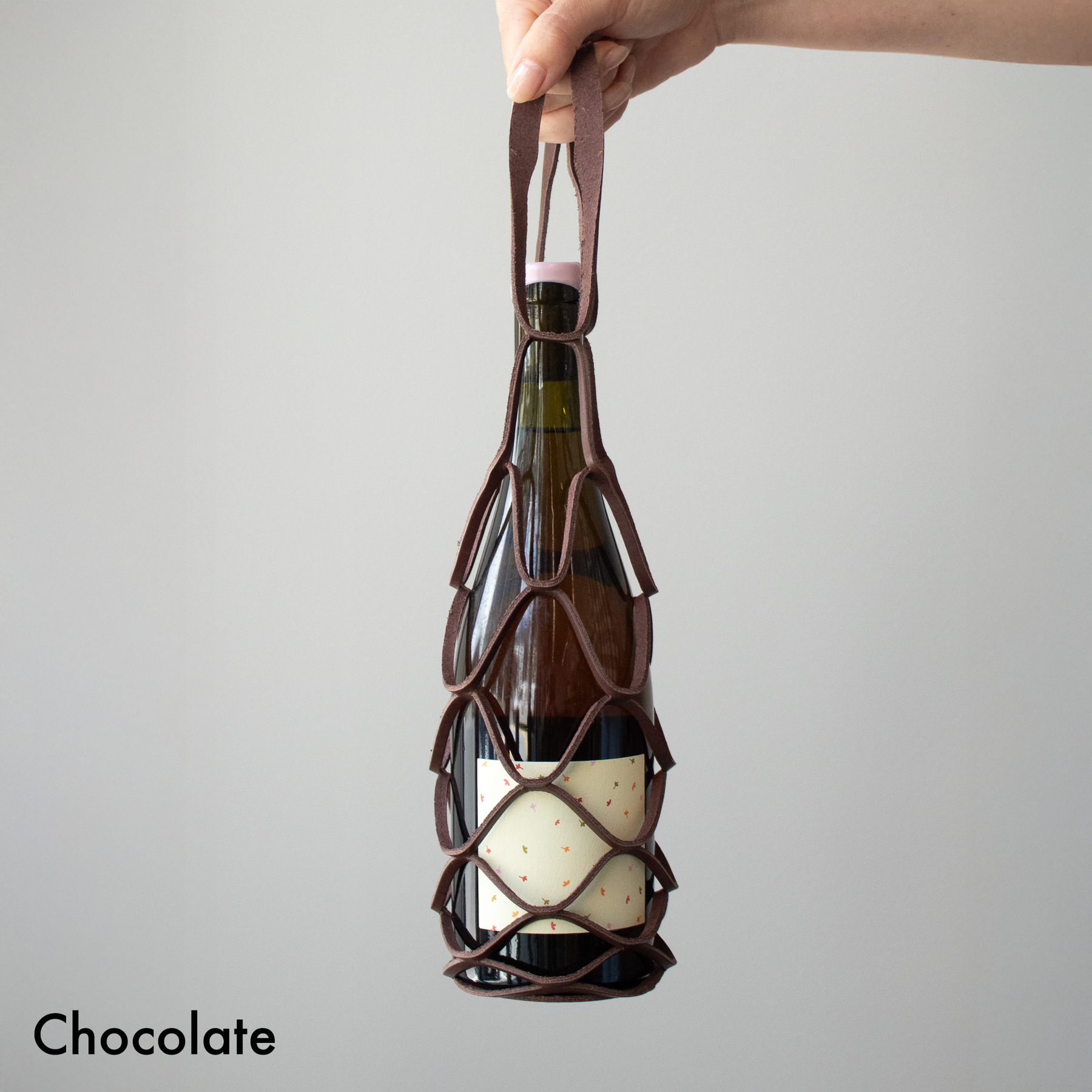 We were in Sydney recently and noticed a few of our friends had these amazing handmade wine bags that fold up from one flat round piece of leather.